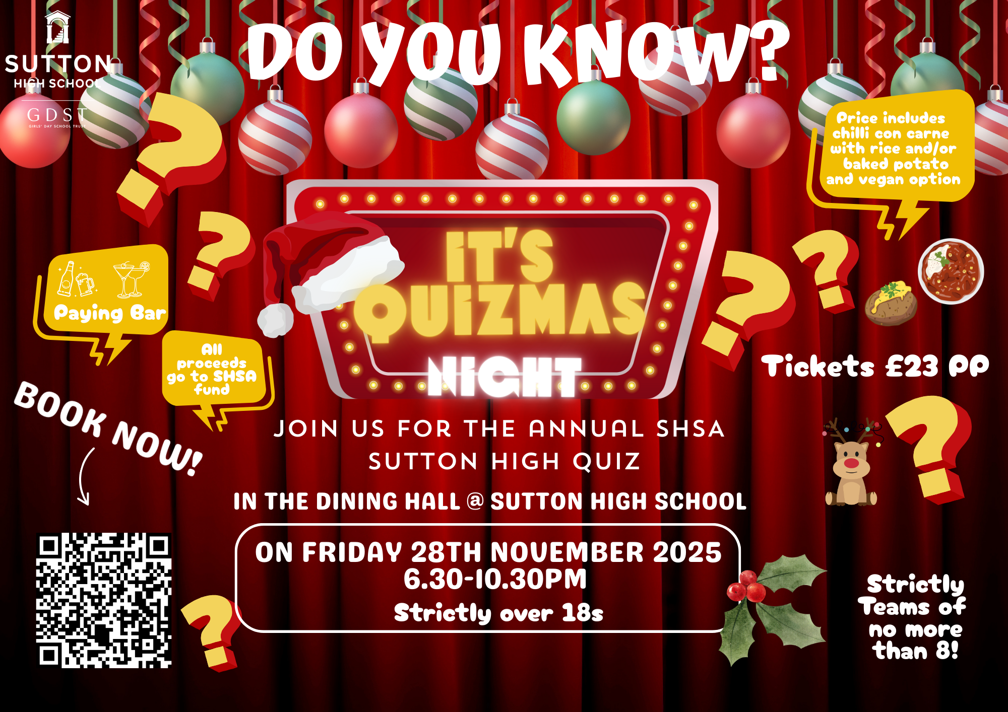 Join us for a night of fun, competition & community spirit at the SHSA School Quiz Night on Friday 28th November 2025 at Sutton High 6.30-10.30pm. Our treasured staff member Clare Hayward and husband Graham have kindly volunteered as quizmasters & our wonderful SHSA will run the bar. All proceeds go to the SHSA fund.