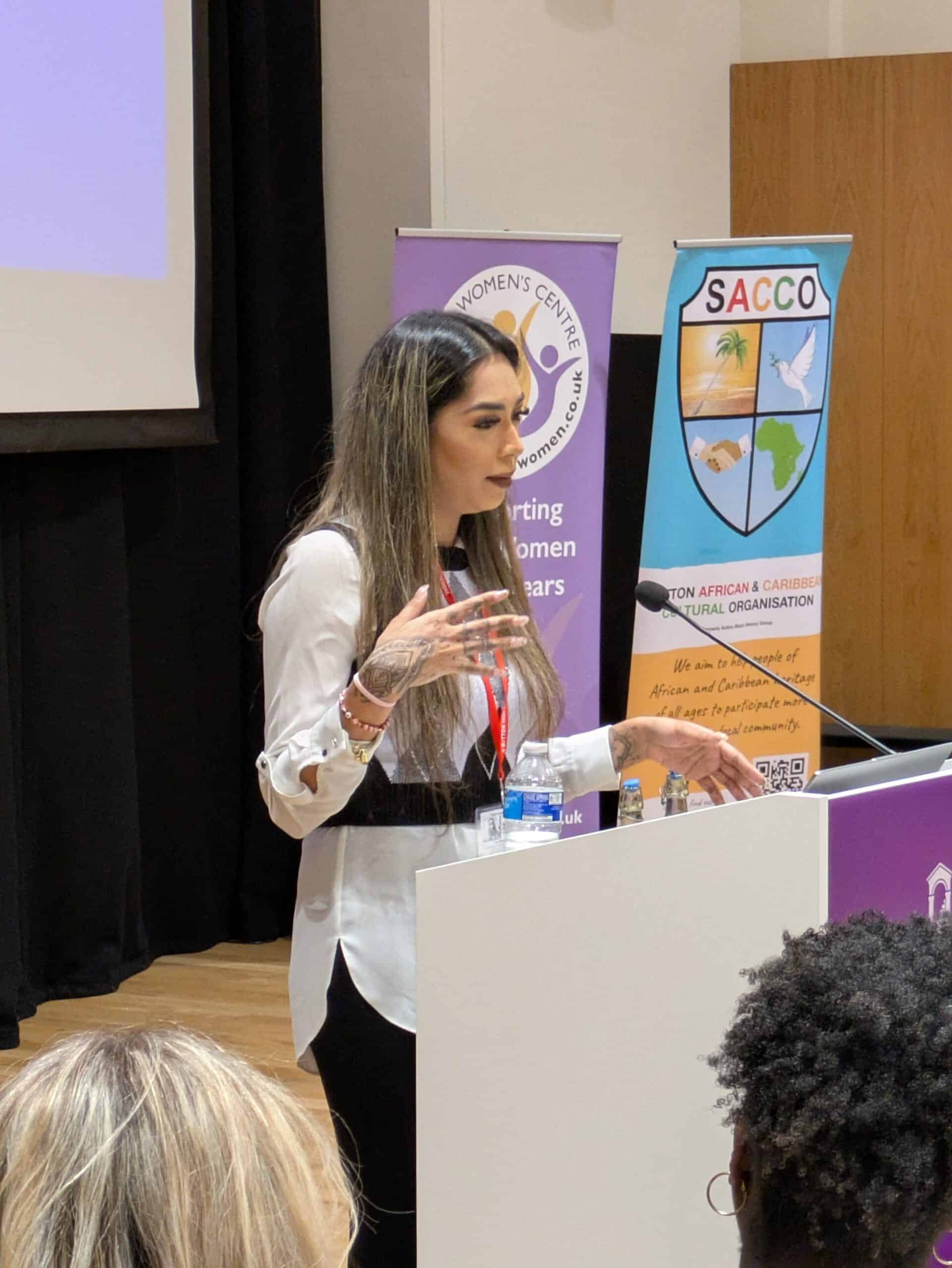 Kamaria Ahmad from Stop Hate UK gave bystander/upstander training Christabel Yeboah, one of the Founders & Chief Vision Officer of the first national Gender-based Violence Support Service for Black femmes in the UK, gave a talk on ‘Your Voice, Your Power: Reclaiming Strength After Silence’ Jesse Ngoma, Youth Engagement Officer and Sarah Lumgair, Operations Manager from People Arise Now, spoke about knife crime, Michael Conroy, founder and director of Men At Work CIC, spoke on male allyship.